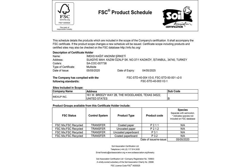 Driven By The Passion And Commitment Of Our Employees And Customers, Imexup Produces Quality Paper And Paperboard Products. Through Continuous Investment In Safety, Sustainability And Operations, We Are Able To Thrive As A Reliable Partner That Works With A Sense Of Urgency To Meet Our Customers Needs And Enable Their Success. We Manufacture Colorful Paper, Tracing Paper and Other Specialty Paper Products At Our Partner Paper Mills In Canada And The United States, China Where We Serve Customers Throughout North America And Europe. Contact Us For Different Grams, Sizes, Reels And Colors. Our Products Have FSC Certificate.